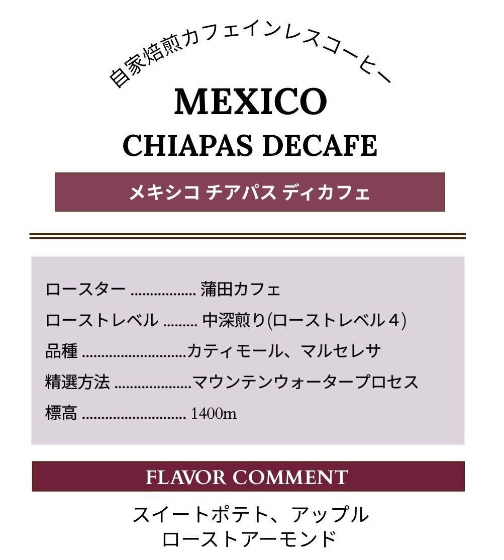 デカフェ、カフェインレスコーヒーの中でも非常に高い評価を得ている、歴史あるメキシコ チアパスのコーヒーです。
